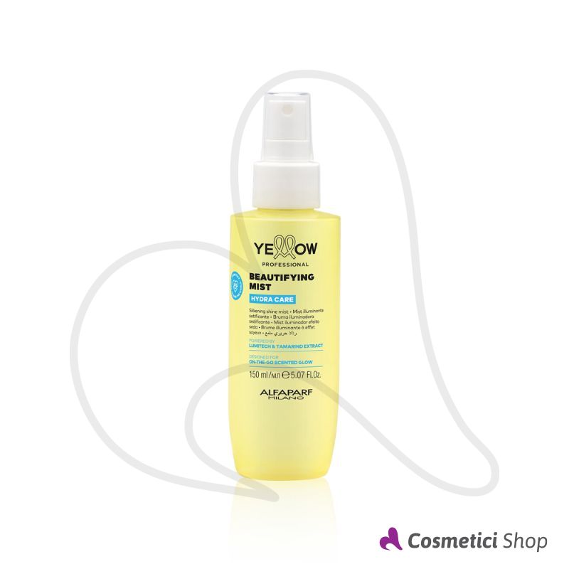 Beautifying Mist della linea Hydra Care di Yellow Alfaparf è uno spray illuminante setificante per tutti i tipi di capelli, dalla texture incredibilmente leggera che avvolge i capelli con una fragranza vivace senza appesantire. Dona luminosità estrema, controlla l’effetto crespo, ravviva la fibra capillare e può essere utilizzata per profumare i capelli.La formula vegan contiene: Lumitech, un complesso composto da estratto di fiore di verbasco e olio di melograno che conferisce luminosità e brillantezza ai capelli, proteggendoli dallo stress ossidativo causato dai radicali liberi e trasformando i raggi UV in una fonte di luce; Aloetrix, un complesso a base di aloe vera, proteine del grano e filtro UV che migliora l’idratazione e la pettinabilità, proteggendo la fibra esterna dei capelli; estratto di Tamarindo, ad azione idratante e antiossidante, dona lucentezza e morbidezza ai capelli, facilitandone la districabilità.