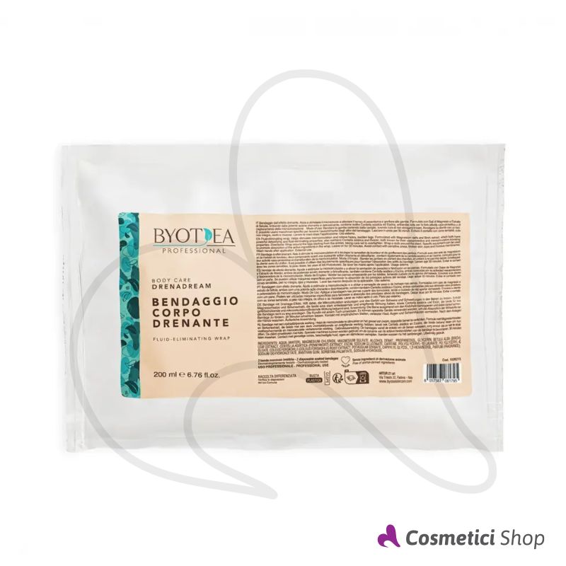Il bendaggio corpo drenante DrenaDream della linea Body Care di Byotea è un trattamento studiato per stimolare il microcircolo e alleviare il senso di pesantezza e gonfiore alle gambe. Formula con sali di Magnesio ed estratto di Betulla ad azione drenante e detossinante, Centella asiatica ed Escina con proprietà vaso-protettiva e di miglioramento della microcircolazione.