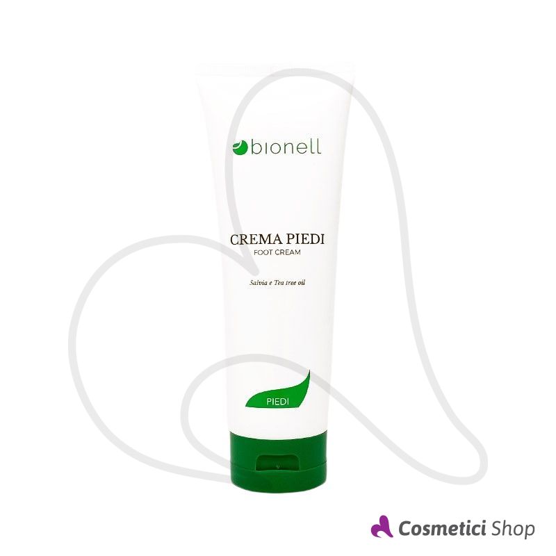La crema piedi Bionell è un'emulsione ricca di principi attivi, quali salvia e Tea Tree. Riduce l'ipercheratosi, migliora l'idratazione e conserva l'igiene del piede, grazie all'azione sinergica di alfa e beta idrossiacidi, lipidi altamente restituivi e oli essenziali ad attività igienizzante.