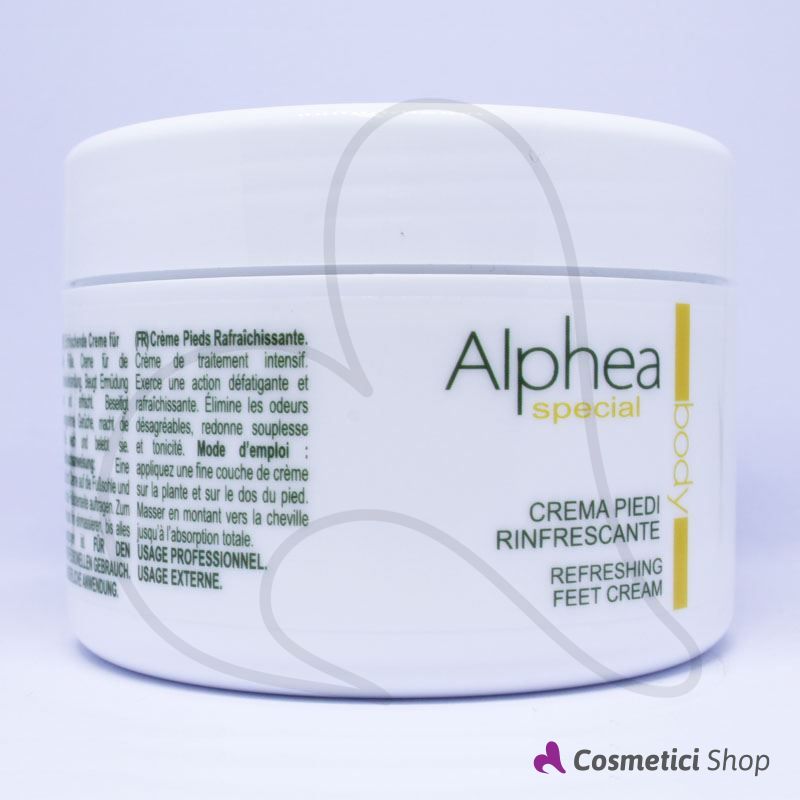 Trattamento intensivo per i piedi. Crema dalle texture compatta e di rapido assorbimento, ridona idratazione, morbidezza e tonicità alla pelle, prevenendo l'ipercheratosi. Ha azione defaticante ed antisettica. Elimina gli odori sgradevoli con immediato effetto rinfrescante.
