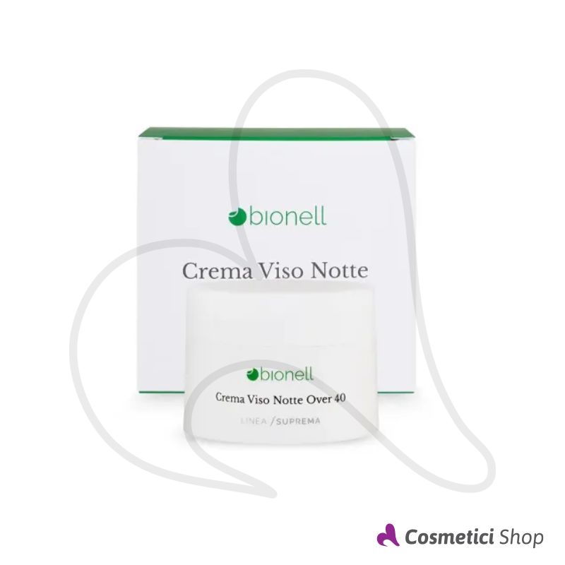 La Crema viso notte Over 40 della linea Suprema di Bionell è un'emulsione ad alto potenziale nutritivo studiata per le pelli più mature, che durante le ore notturne arricchisce la pelle con la giusta dose di sostanze necessarie al buon funzionamento delle cellule e del microcircolo. Dona un aspetto luminoso e rilassato.