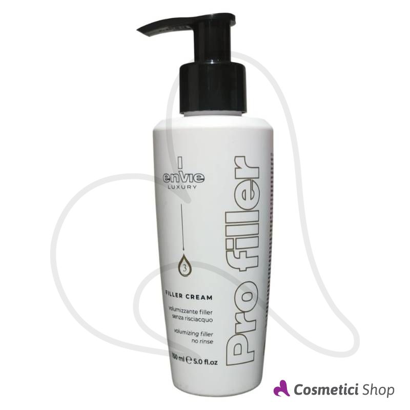 Il trattamento Hair Filler Luxury Envie è una linea di prodotti professionali studiati per capelli fragili, danneggiati o sottili, che agiscono come "Filler" donando volume, corpo e lucentezza. Gli ingredienti presenti nella formulazione penetrano in profondità nella fibra capillare e riempiono gli strati danneggiati del capello con un'azione volumizzante, ristrutturante e rigenerante, donando da subito un aspetto più sano e curato.