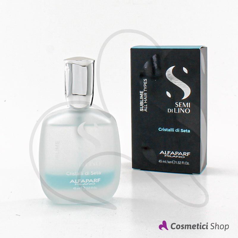 Cristalli Di Seta é un siero setificante bifasico che purifica, perfeziona e sublima tutti i tipi di capelli rendendoli vellutati e leggeri, effetto seta. Innovativa formula con agenti attivi: Urban Defence Pro che offre protezione anti-inquinamento, Shine Fix Complex dall'alto potere illuminante, Color Fix Complex con filtri UV per mantenere inalterato e luminoso il colore, e un mix di proteine del grano idrolizzate e glicerina con proprietà rinforzanti, protettive e idratanti. Piacevole fragranza fiorita.