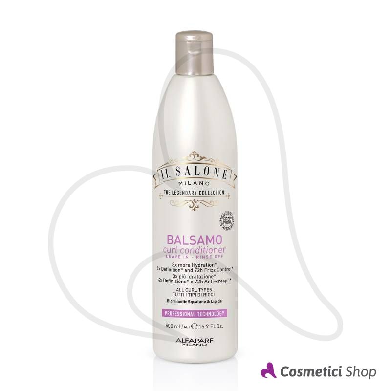 Curl Conditioner di Il Salone Milano Alfaparf è un balsamo che districa istantaneamente e nutre in profondità senza appesantire. La linea professionale Curl è studiata per tutti i tipi di ricci, apporta idratazione e definizione esaltandone la forma naturale. La formula vegana contiene ingredienti di origine naturale, Squalano e Lipidi Biomimetici, crea un film protettivo che trattiene l’idratazione all'interno della fibra capillare, svolge azione anti-crespo a lunga durata, rinforza la fibra rendendo i ricci 6 volte più resistenti alle rotture ed esalta la luminosità.