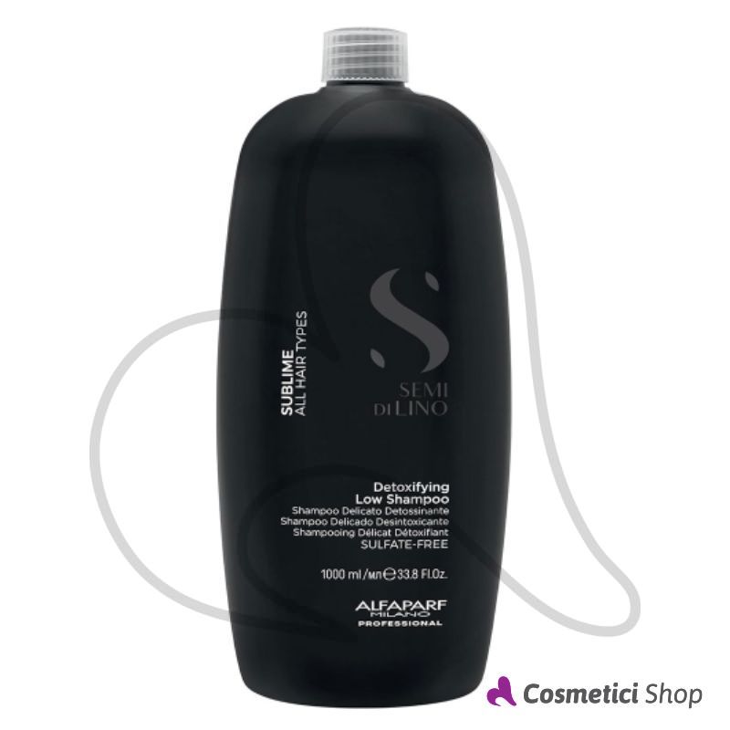 Detoxifying Low Shampoo della linea Sublime Semi di Lino di Alfaparf Milano è un detergente delicato che offre una pulizia intensiva rimuovendo in profondità impurità, residui e agenti inquinanti. Ideale per tutti i tipi di capelli. Formula Vegan e biodegradabile con "Urban Defence Pro" ad azione anti-inquinamento, "Shine Fix Complex" ad alto potere illuminante, "Color Fix Complex" antiossidante con filtro UV per proteggere il colore, ed estratto di Moringa Oleifera con proprietà purificanti.
