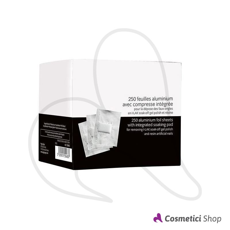 Fogli di alluminio con garza integrata realizzati per la facile e veloce rimozione di unghie finte in resina, gel soak-off e smalto semipermanente.