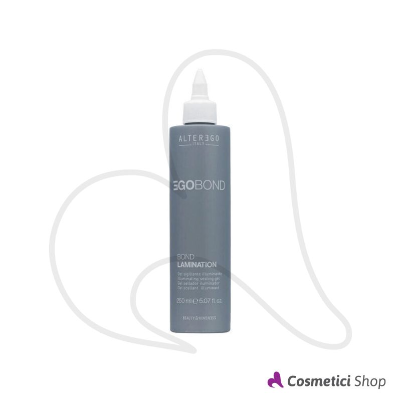 Bond Lamination della linea Egobond di Alterego è un trattamento di laminazione che ristruttura il capello e sigilla le cuticole per garantire un istantaneo controllo del crespo ed ottenere l'effetto "glossy hair". La texture in gel sigilla la cuticola permettendo alla luce di riflettere al meglio sulla superficie del capello che risulta pettinabile e luminoso. La formula contiene un potente attivo, composto da una miscela di amminoacidi e proteine di derivazione vegetale, che penetra nella cuticola del capello, costruendo la forza dall'interno grazie al suo basso peso molecolare e, contemporaneamente, avvolge il fusto in un film protettivo esterno che dona estrema lucentezza.