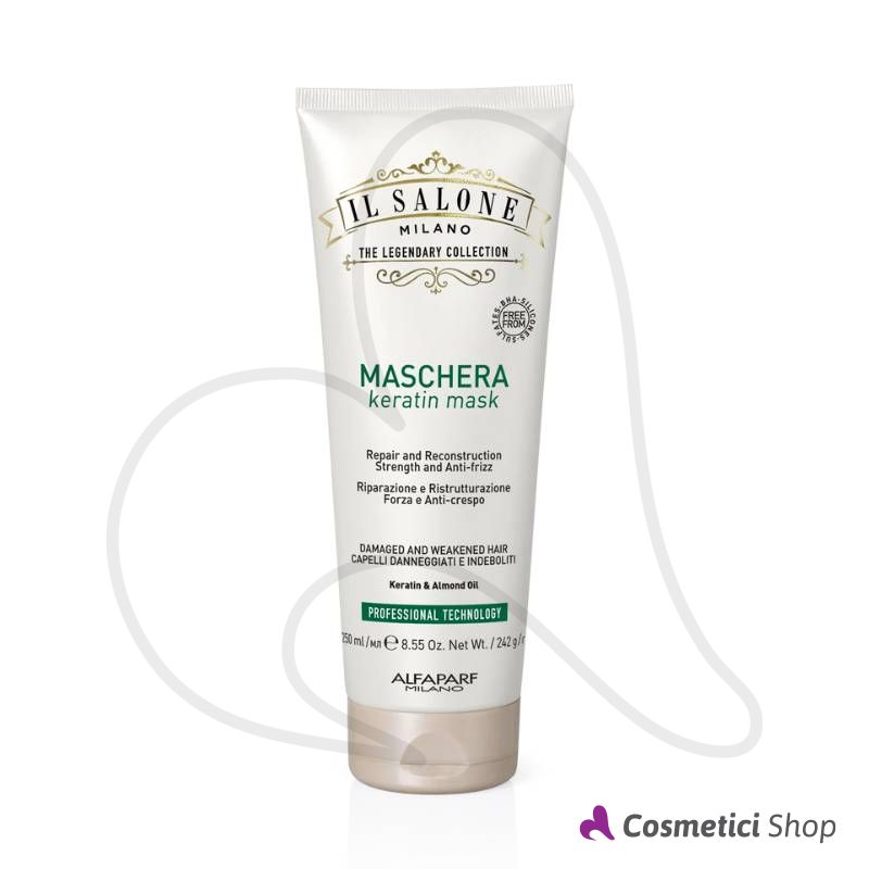 Keratin Mask di Il Salone Milano Alfaparf è una maschera professionale per capelli danneggiati e indeboliti che ripara, ristruttura e fortifica la fibra capillare, grazie alla formula con Cheratina che restituisce resistenza e luminosità. Arricchito con olio di mandorla ad azione idratante, protettiva ed anti-crespo.