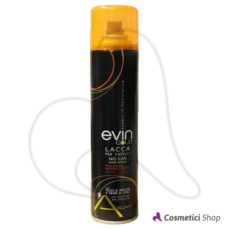 Lacca no gas Argan di Evin Gold è ideale per definire ogni tipo di styling, grazie alla sua tenuta extra-forte. La formula con olio di Argan ed estratto di semi di lino rinforza e nutre i capelli.