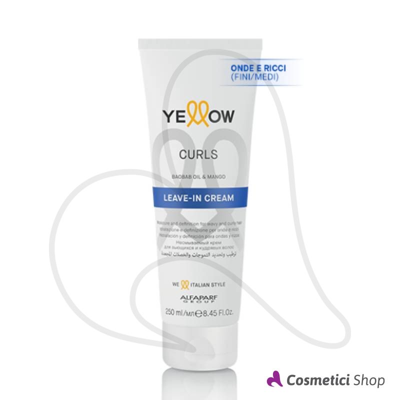 Leave-in Cream Curls di Yellow Alfaparf è una crema senza risciacquo studiata per idratare e disciplinare i capelli ricci, spesso secchi e crespi, mantenendo la leggerezza e proteggendo dal calore del phon. Formula con ingredienti 100% naturali, a base di burro di mango e olio di Baobab che si fondono in una preziosa miscela che condiziona, illumina, dona struttura e nutrimento alla fibra capillare.