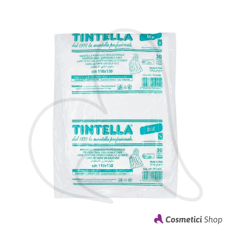 Mantella da taglio monouso grande, dimensioni 110x130 cm. Impermeabile, in polietilene ad alta resistenza di colore bianco. Materiale certificato 100% riciclabile.