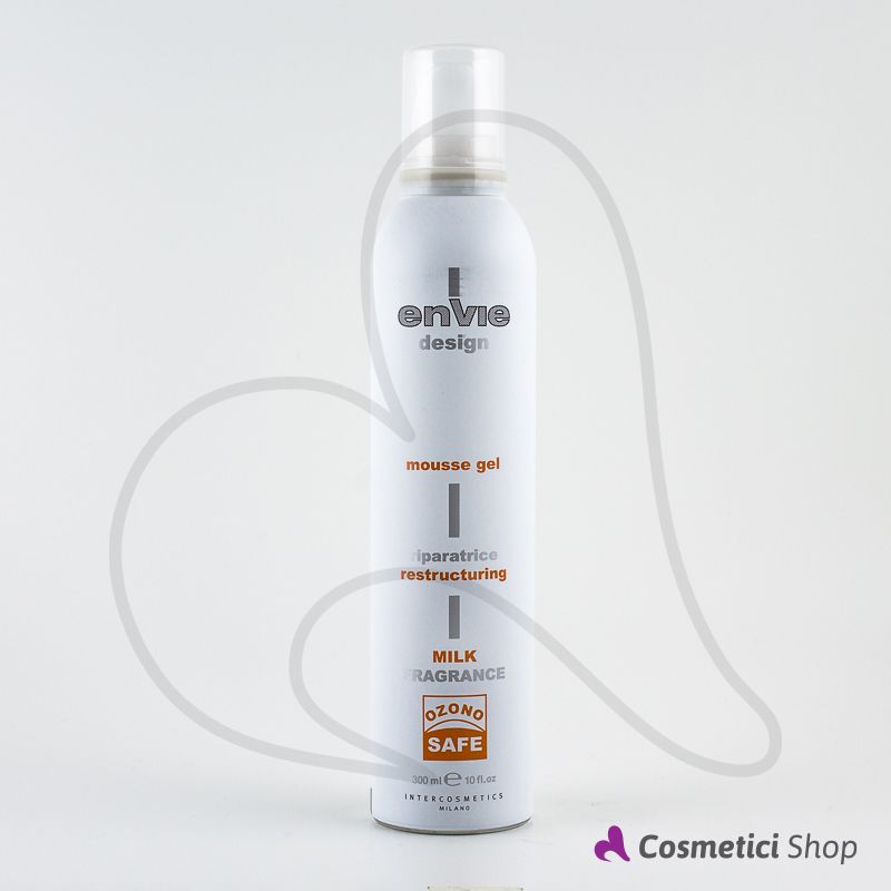 Mousse Gel riparatrice Design Envie è una schiuma gel per capelli trattati, decolorati, secchi e crespi che svolge azione riparatrice della fibra capillare. Apporta setosità, sostegno, luminosità e vitalità. Adatta sia per l'asciugatura con phon che al naturale; l’asciugatura al naturale permette di ottenere un effetto bagnato.