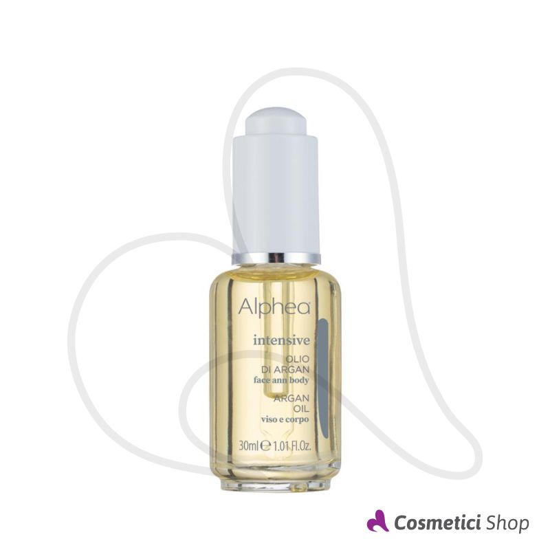 L’olio di Argan della linea Intensive di Alphea è un elisir di bellezza per viso e corpo, poichè possiede eccezionali proprietà nutrienti, idratanti, emollienti, antiossidanti, elasticizzanti e rivitalizzanti. Riattiva le funzioni vitali delle cellule attenuando la comparsa delle rughe e mimetizzando le occhiaie, è un ottimo alleato contro l’invecchiamento cutaneo ed è eccellente anche negli interventi cosmetici professionali di riduzione delle smagliature. L'olio di Argan (estratto di Argania Spinosa) è ricco di Vitamina E e di acidi grassi polinsaturi, per questo è noto anche come “oro del deserto”.