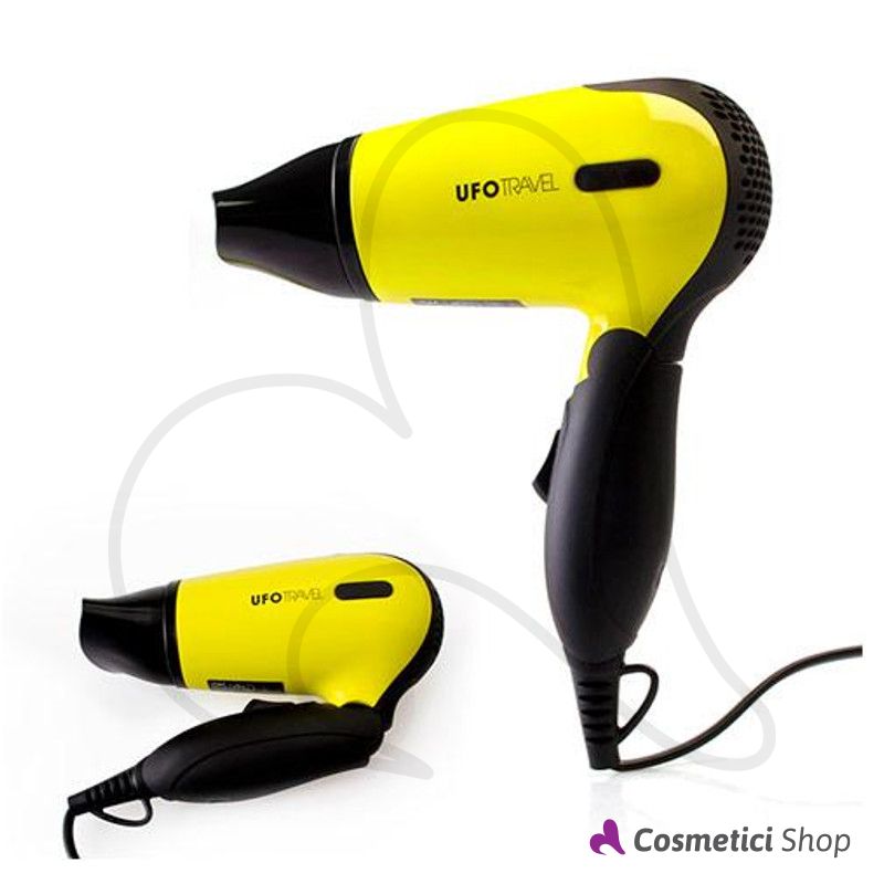Ufo Travel è un phon portatile con un motore potente al pari di un asciugacapelli professionale. Dal design moderno e compatto, ha il manico pieghevole salva-spazio con impugnatura antiscivolo. Ideale in palestra o in viaggio.