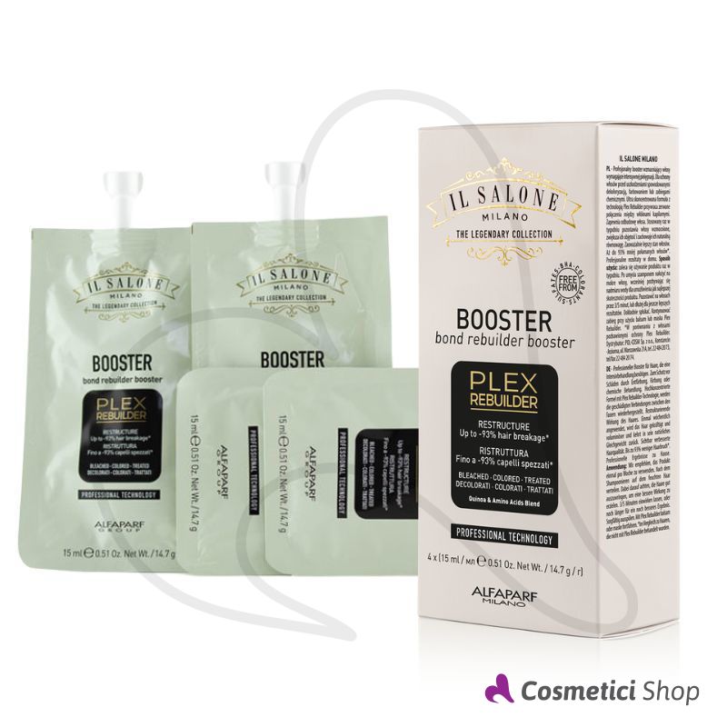 Plex Rebuilder Booster di Il Salone Milano Alfaparf è un trattamento d'urto per riparare e proteggere dai danni causati da decolorazione, colorazione o trattamento chimico. La formula ultra-concentrata contiene Plex Rebuilder, una tecnologia ad azione ristrutturante che ripristina i legami spezzati tra le fibre capillari, conferendo vigore e corposità, ripristinando il naturale equilibrio e riducendo notevolmente i capelli spezzati. Arricchito da quinoa che preserva e protegge il colore, olio di mandorla ad azione idratante e protettiva, ed un mix di amminoacidi con proprietà altamente nutrienti.
