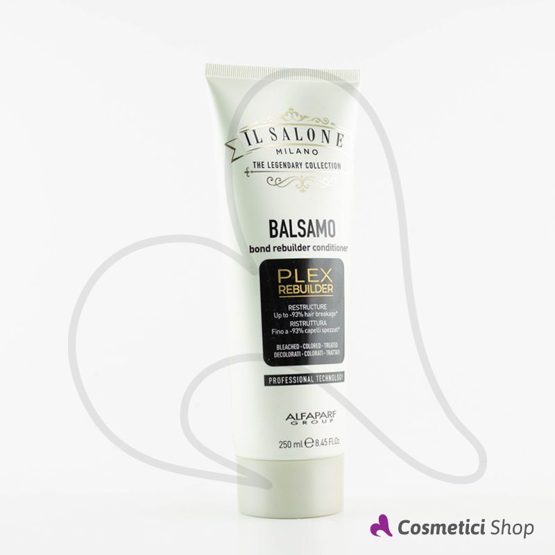 Plex Rebuilder Conditioner di Il Salone Milano Alfaparf è un balsamo professionale per capelli stressati da colorazioni, decolorazioni e trattamenti chimici. Formula attiva con tecnologia "Plex Rebuilder" che ripristina i legami spezzati tra le fibre ristrutturando la fibra capillare dall'interno (fino al 93% in meno di capelli spezzati), e protegge i capelli per i successivi trattamenti. Districante. Arricchito da quinoa che preserva e protegge il colore, olio di mandorla ad azione idratante e protettiva, ed un mix di amminoacidi con proprietà altamente nutrienti. Restituisce alla capigliatura un aspetto sano e rinvigorito.