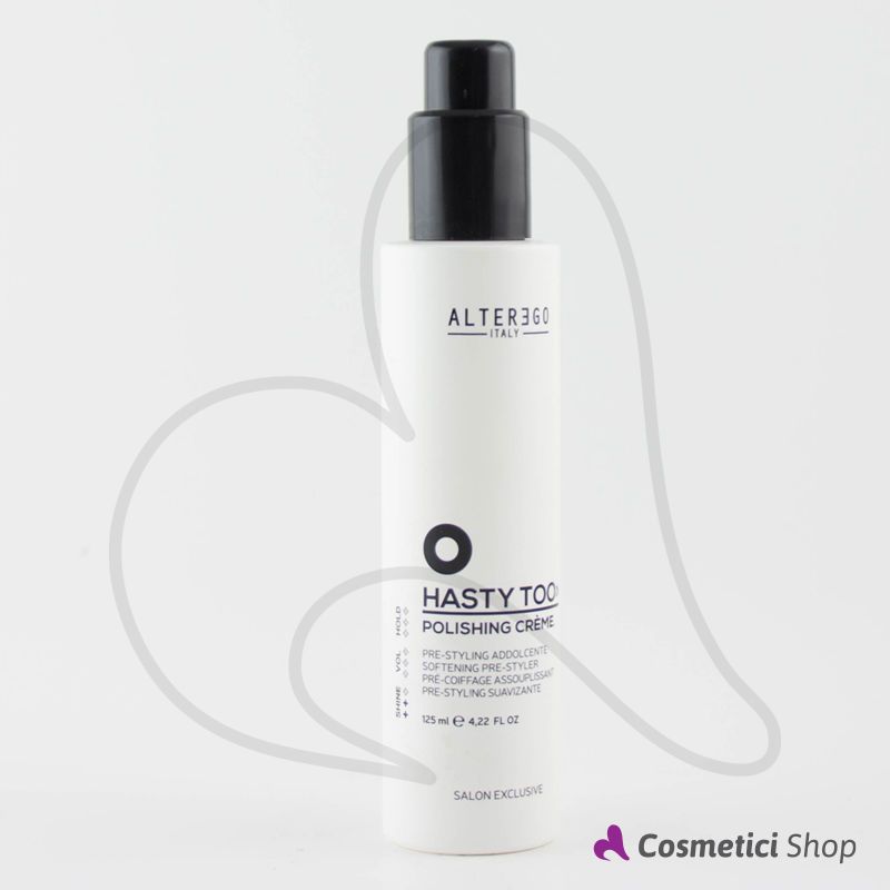 Hasty too Polishing Crème è un addolcente pre-styling per capelli medi, medio-grossi e trattati. Svolge un'azione emolliente sulla struttura dei capelli, li rende morbidi e setosi, ed aiuta a gestirli e definirli durante lo styling senza indurire la capigliatura.