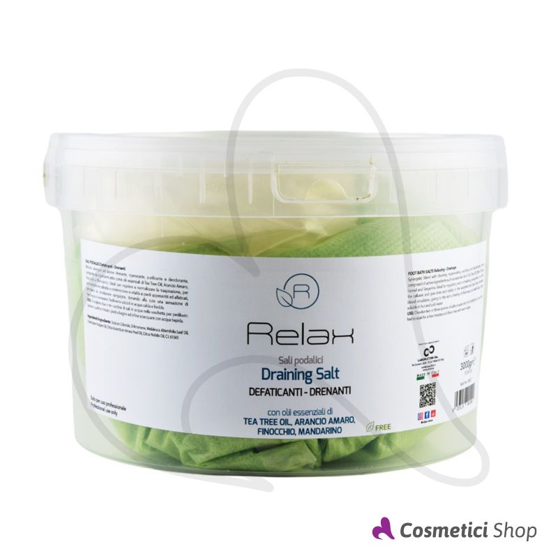 I sali podalici Relax sono ideali per regolare e normalizzare la traspirazione, per ammorbidire le callosità e conferire tono e vitalità ai piedi appesantiti ed affaticati, stimolando la circolazione sanguigna, donando alla cute una sensazione di freschezza e benessere. I sali marini attraggono in superficie dell’epidermide i liquidi che ristagnano e svolgono un’ azione combinata rigenerante ed idratante sui tessuti cutanei. La formula è ricca di Tea Tree oil con proprietà purificanti e disinfettanti. Facilmente solubili in acqua calda e fredda.