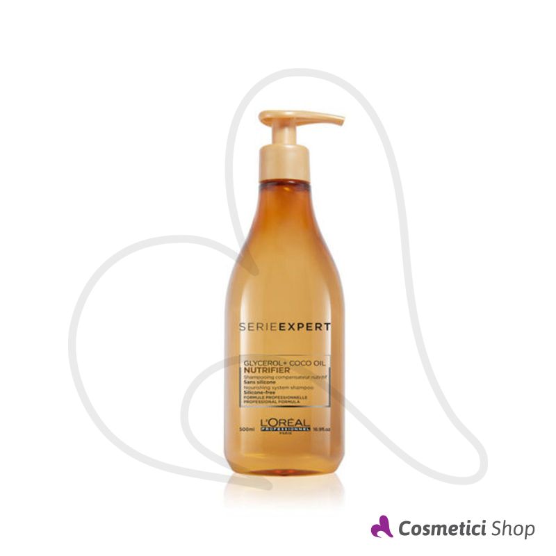 Lo shampoo professionale Nutrifier Serie Expert di L'Oréal è ideale per trattare i capelli secchi e denutriti. Dalla texture molto leggera, la formula senza siliconi con Glicerolo e olio di cocco nutre, ammorbidisce ed illumina i capelli. L’olio di cocco ha una struttura lipidica molto simile a quella dei capelli stessi, in grado di aderire alla fibra, riempiendo ogni spazio causato dai danni.