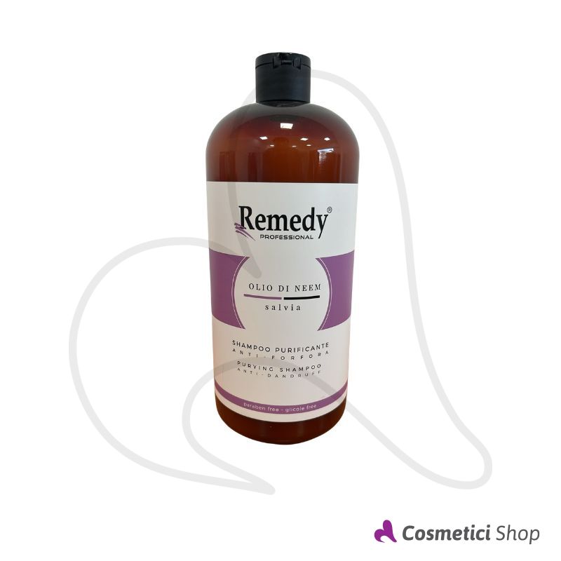 Lo Shampoo purificante Remedy deterge delicatamente ed esercita una decisa azione deforforante. Grazie alla sua ricca texture ed alla formula con preziosi ingredienti, quali olio di Neem ed estratto di Salvia, riduce la desquamazione cutanea e dona al capello una sensazione di pulizia profonda e lucentezza.